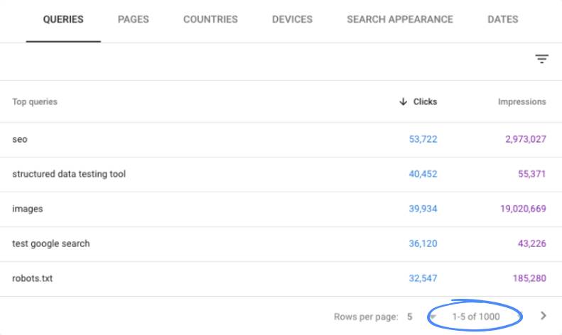The Google Search Console UI has a hard limit of 1000 rows. Select a property, configure your query and create insightful explorations.